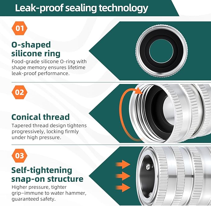 • High quality stainless steel: The copper connectors tend to corrode then get stuck onto the end of hose, the plastic ones crack easily. Stainless steel is more damage-resistant and strong enough. The adapter parts connected smoothly and securely without breaking, rusting and leakage.