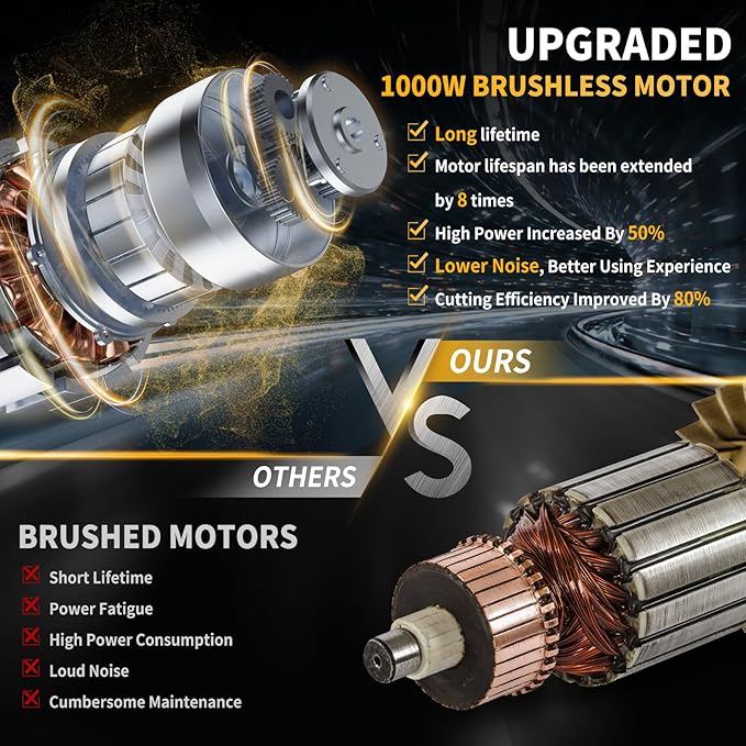 - The high-performance brushless motor - JEXUGK wireless saw is equipped with a powerful 1000W brushless motor,offering outstanding cutting performance. It can easily cut an 8-inch branch within just 10 seconds (the cutting time may vary depending on the wood density). The upgraded cooling holes enable the motor to continuously output at high power,maintaining the optimal motor temperature and extending its service life