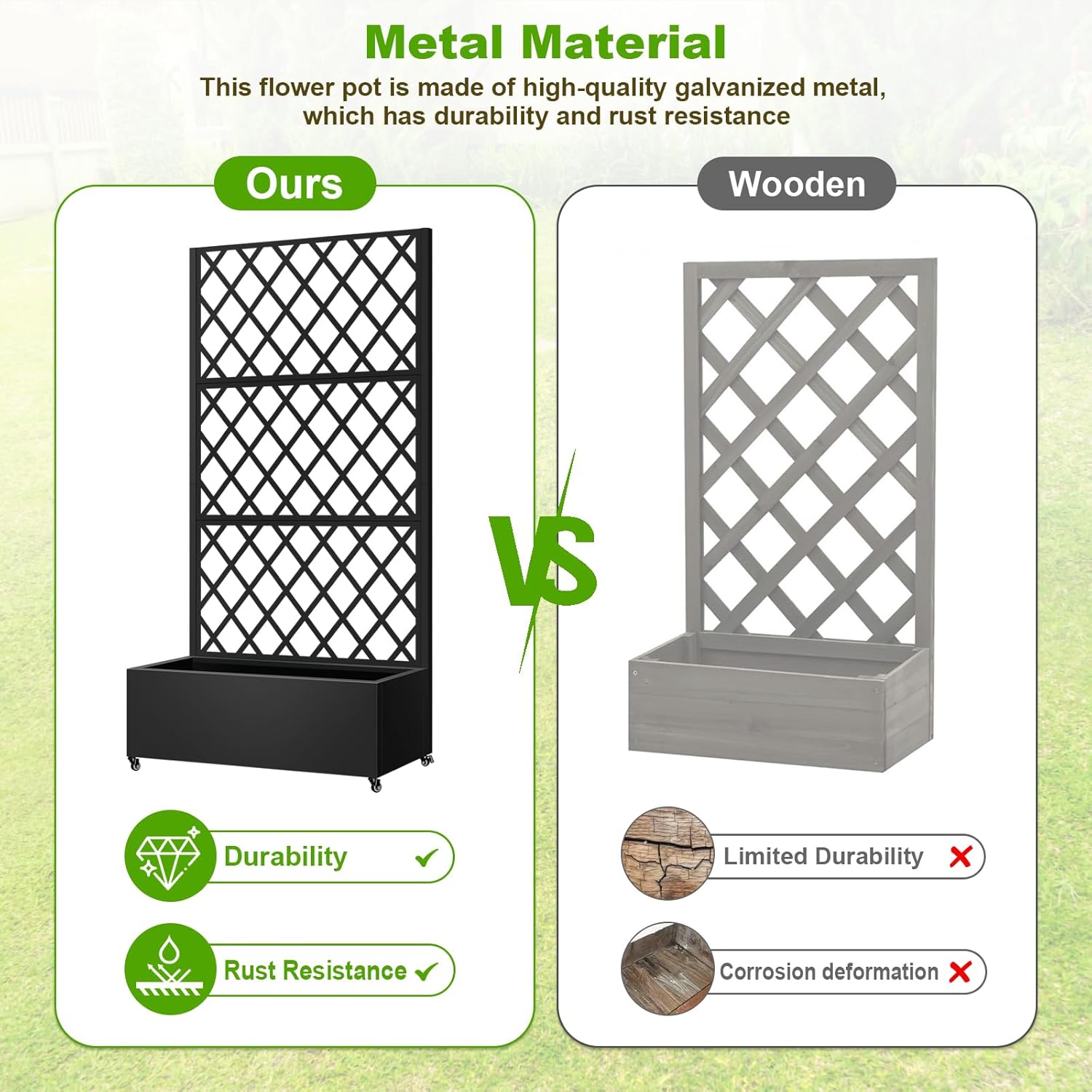 • Durable Material: This planter box is made of galvanized metal, which is different from wooden planter box in that it has durability and rust resistance, and can be used for a long time