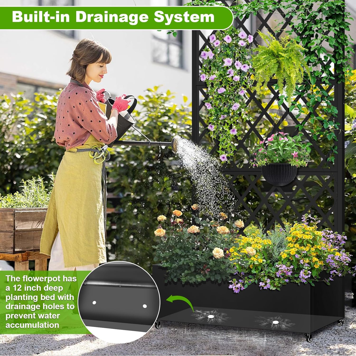 Metal Planter Box with Trellis, 72"x35"x16" Metal Raised Garden Bed with Trellis, Trellis Planter Box with Drainage Holes & Lockable Casters for Climbing Plants, Vegetables, and Vines