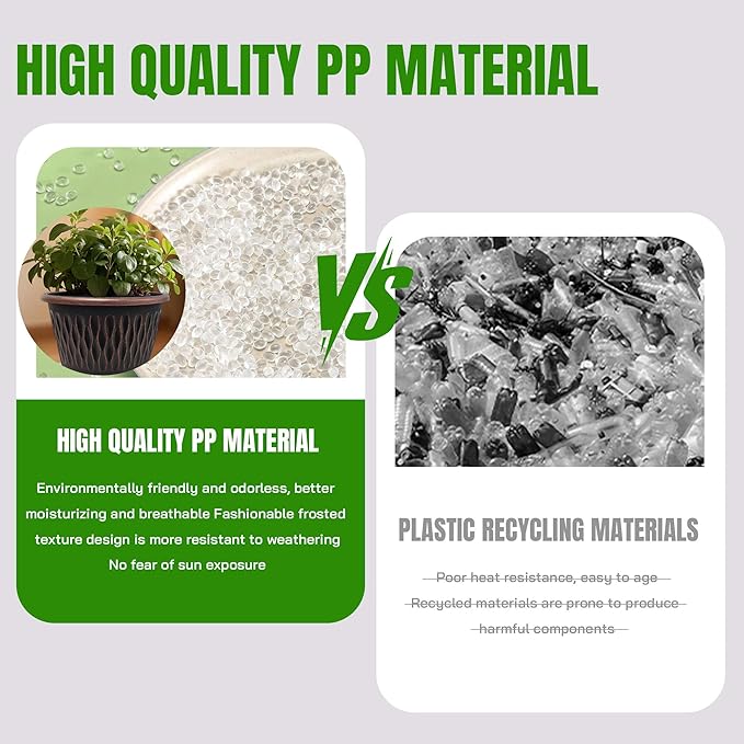 • 【High-Quality Meterial】Crafted from premium PP plastic, these pots offer the best of both sturdiness and lightness. They’re easy to move while resisting cracks, fading, and UV damage, ensuring long-term use without compromising on style or durability.
