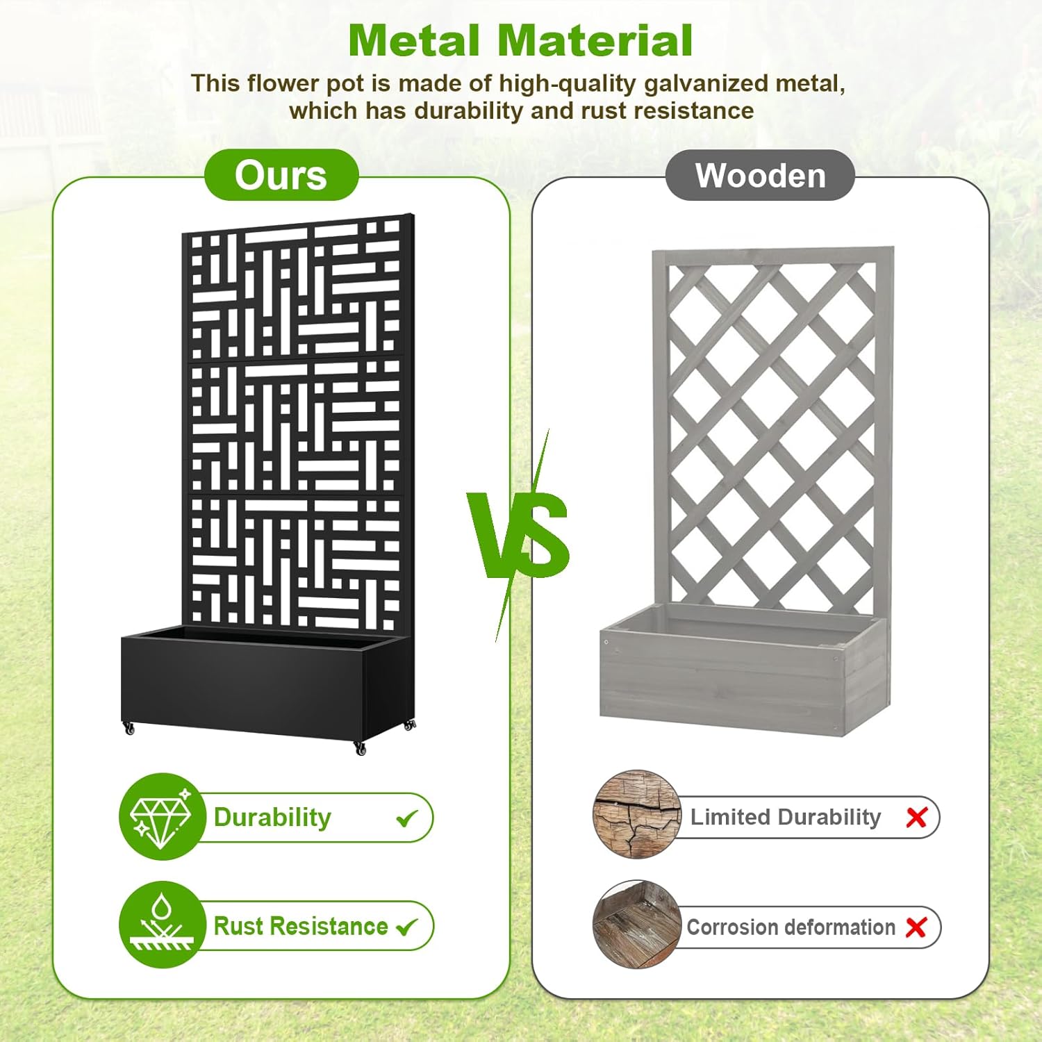 • Durable Material: This planter box is made of galvanized metal, which is different from wooden planter box in that it has durability and rust resistance, and can be used for a long time