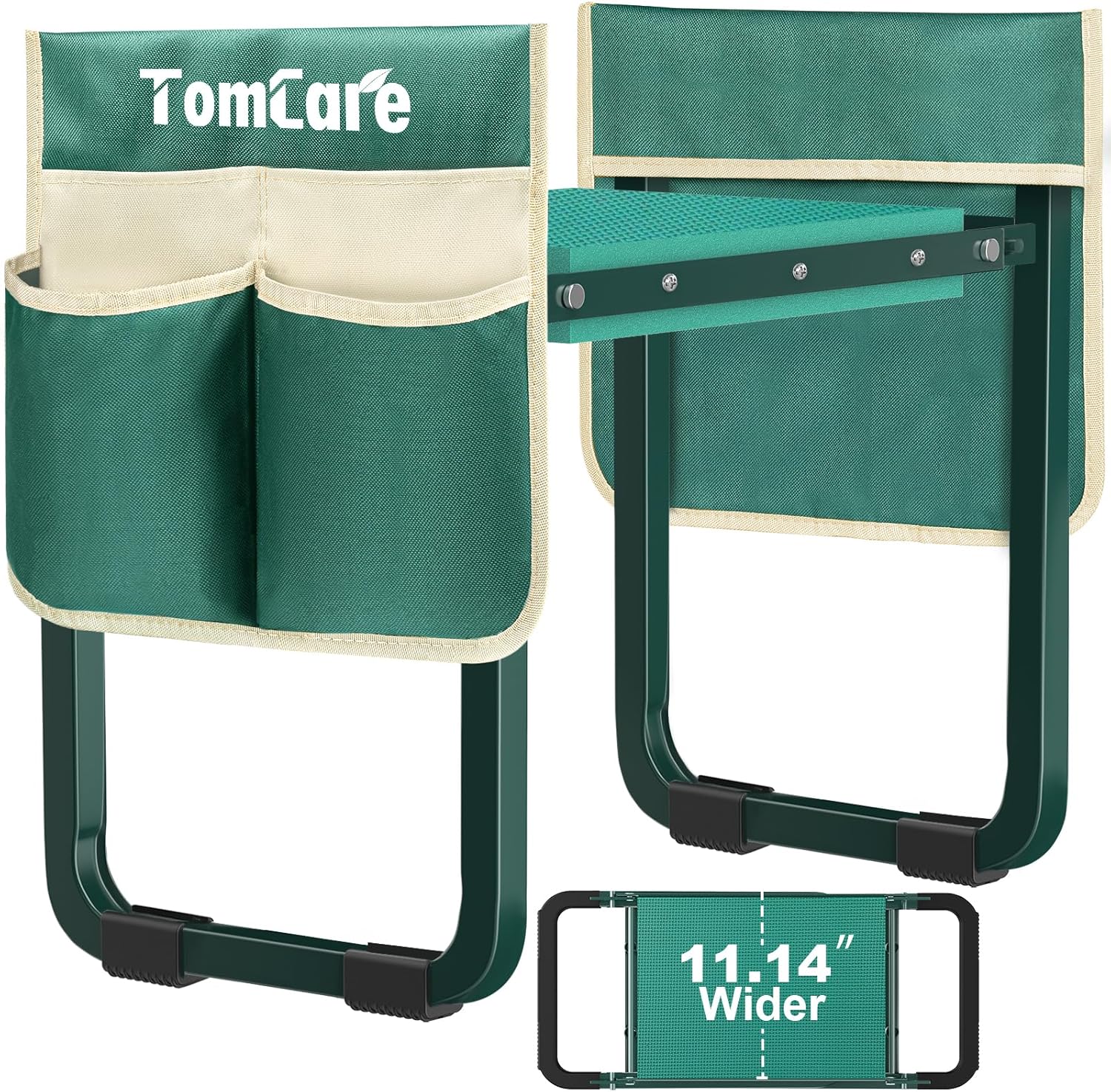 TomCare Garden Kneeler and Seat 11.14” Wider Larger Soft Kneeling Pad Garden Bench with 2 Large Tools Pouches Heavy Duty Foldable Garden Stool Gardening Gifts for Women Men Gardeners Seniors,Green
