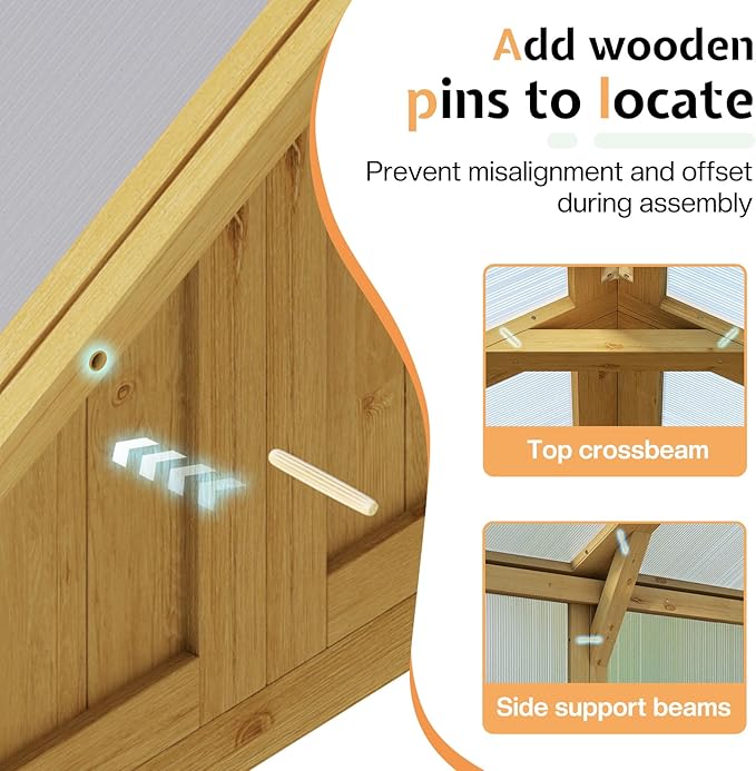 • Spacious Interior: Greenhouse wood with a 5.38ft wall height and 7.45ft peak height, this greenhouse provides ample space to move around, ideal for gardening, relaxation, and more