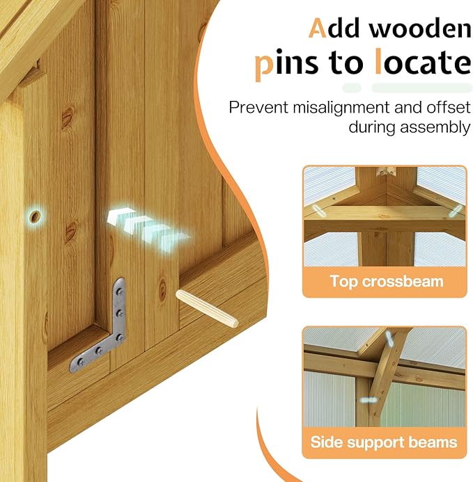 • Sturdy Wood Frame: Wood greenhouse built with premium cedar and reinforced metal hardware for durability. Wind rating reaches 24-38mph and the maximum load capacity is 440lbs, which ensure stability in various weather conditions