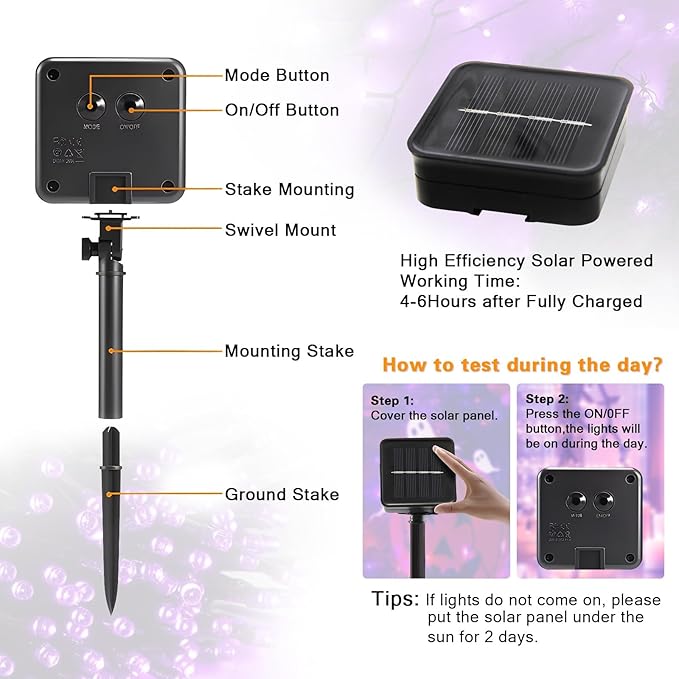 • 【Versatile Outdoor/Indoor String Lights】Solar Halloween string lights with a total of 6 strings allow you to be more flexible with your imagination and can be easily installed wherever you need to decorate. The solar lights can be molded into various shapes for gardens, patios, trees, porches, roofs, fences, bistros, restaurants, hotels, commercial buildings. It can also be used for parties, Halloween and New Year parties to create a warm and joyful holiday atmosphere.
