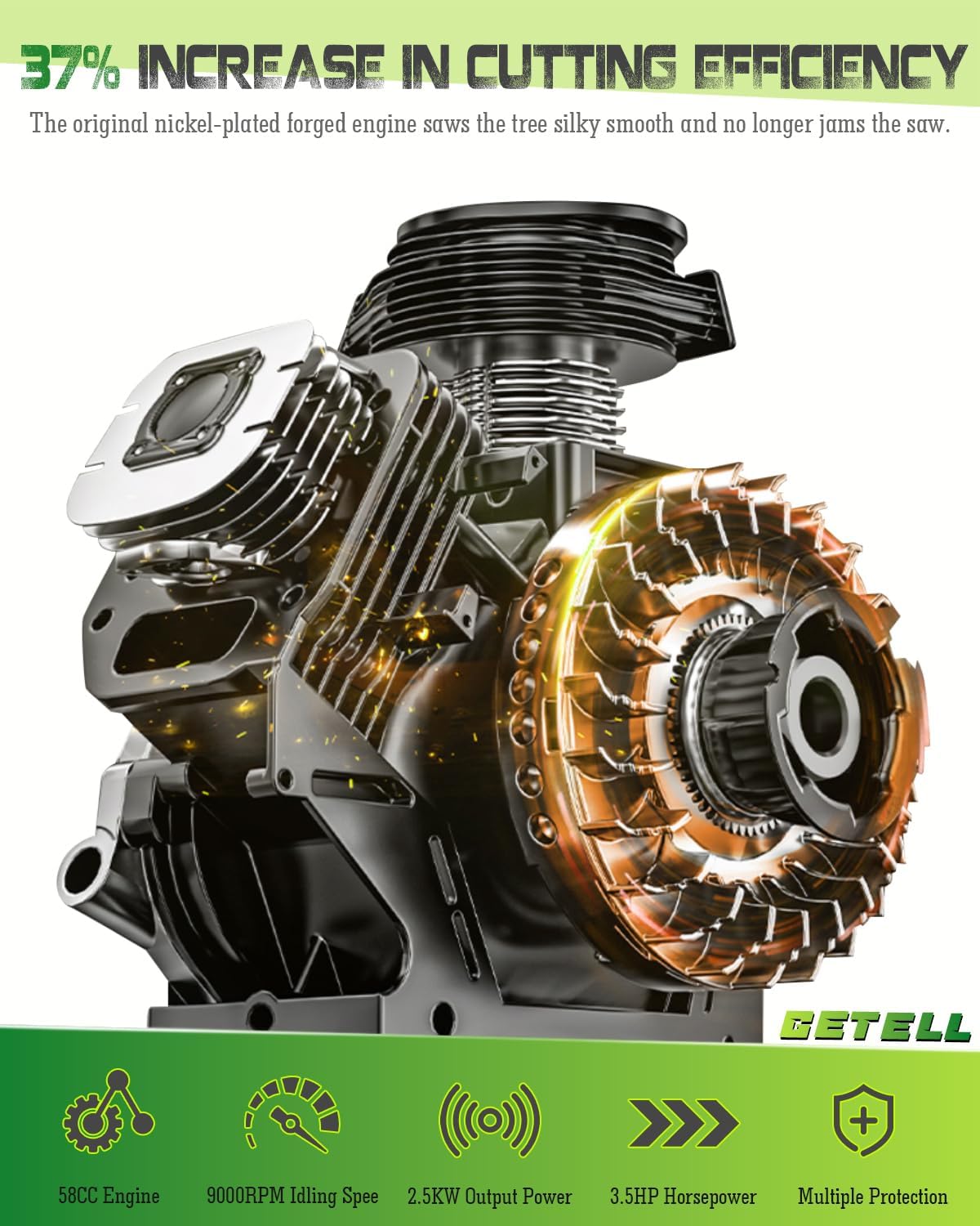 • Dominate Any Task with Professional Power: Imagine your toughest jobs melting away. The high-output 58cc engine delivers relentless cutting performance, slicing through thick logs and dense firewood with ease so you can finish projects faster