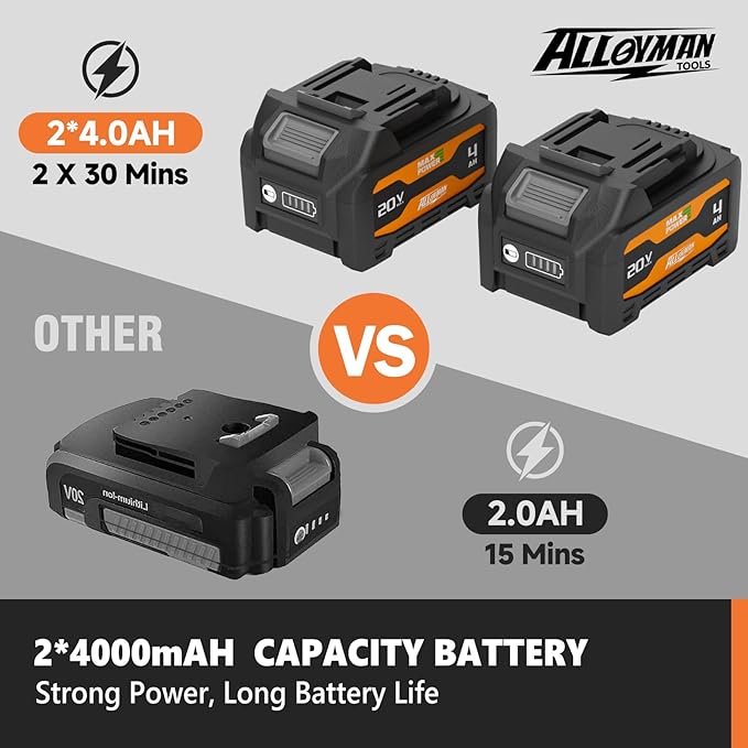 - 【2*4.0Ah Large Capacity Batteries】The powerful Li-ion with overload and temperature protection can provide a longer lifespan and also make your work more efficient and convenient. A single battery lasts for 30 minutes, and you can alternate between the two batteries to trim your bushes.
