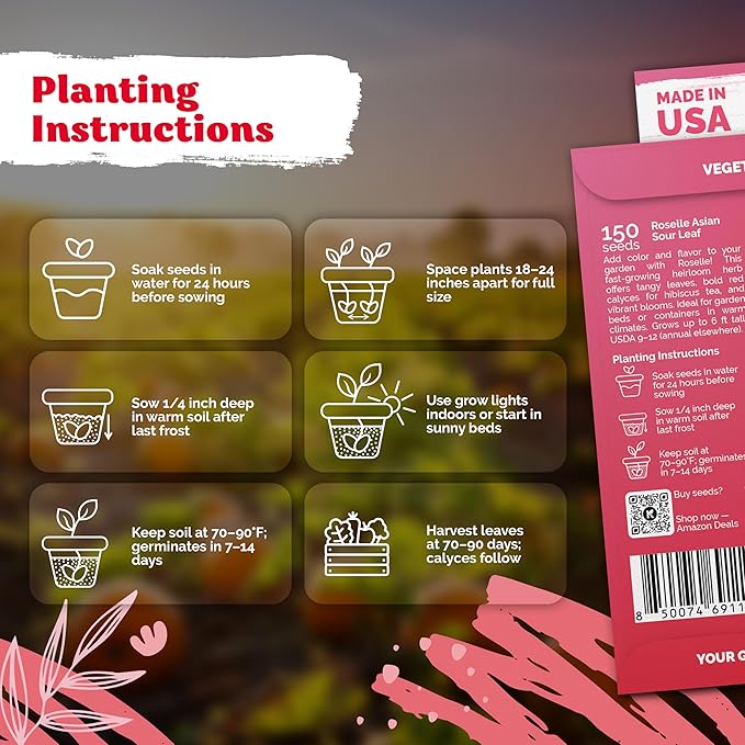• Easy to Plant: Soak roselle seeds for planting 24 hours, sow 1/4 inch deep. For best yields, feed monthly. Ideal as sorrel leaves or dried hibiscus flowers for teas, jams, and tangy dishes.