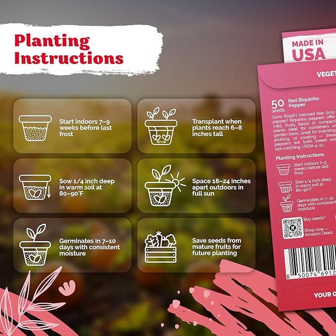 • Non-GMO & Heirloom: Grown without chemicals, these sweet drop peppers organic seeds are perfect for sustainable gardening. Plant once and save seeds for future harvests, promoting organic gardening.