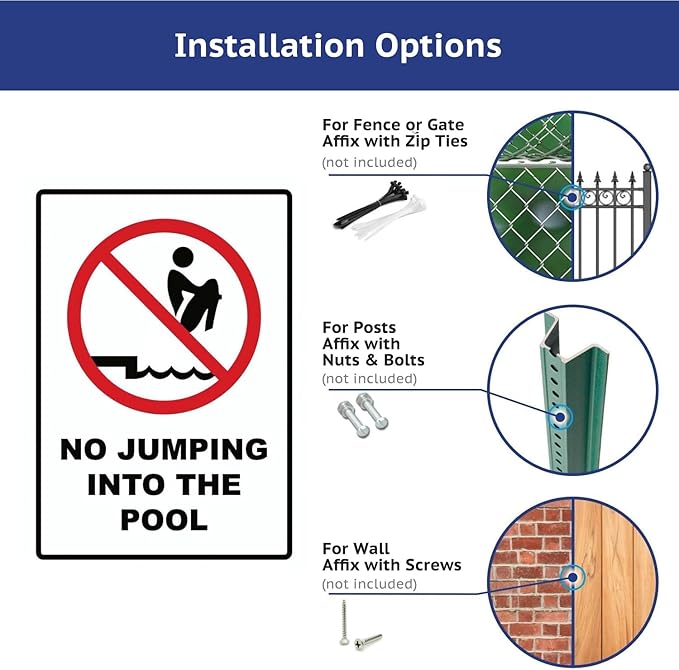 No Jumping into the Pool Outdoor Metal Pool Signs - Perfect Pool Gifts for New Homeowners & Retirees