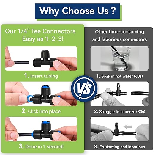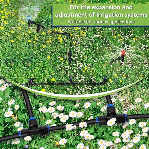 10 Pack 1/4" Drip Irrigation Tee Connectors, Quick Connect Universal Drip Irrigation Tubing Coupling Valve, Connector Locking Fitting for Sprinkler or Drip Irrigation System