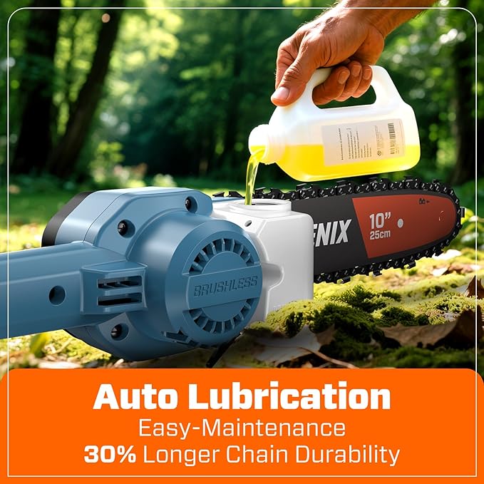 • 【Powerful Cutting Performance】The SENIX X6 Electric Brushless Pole Saw delivers professional-grade cutting with a 10-inch bar and an ultra-fast 65.6ft/s (20m/s )chain speed for maximum efficiency.
