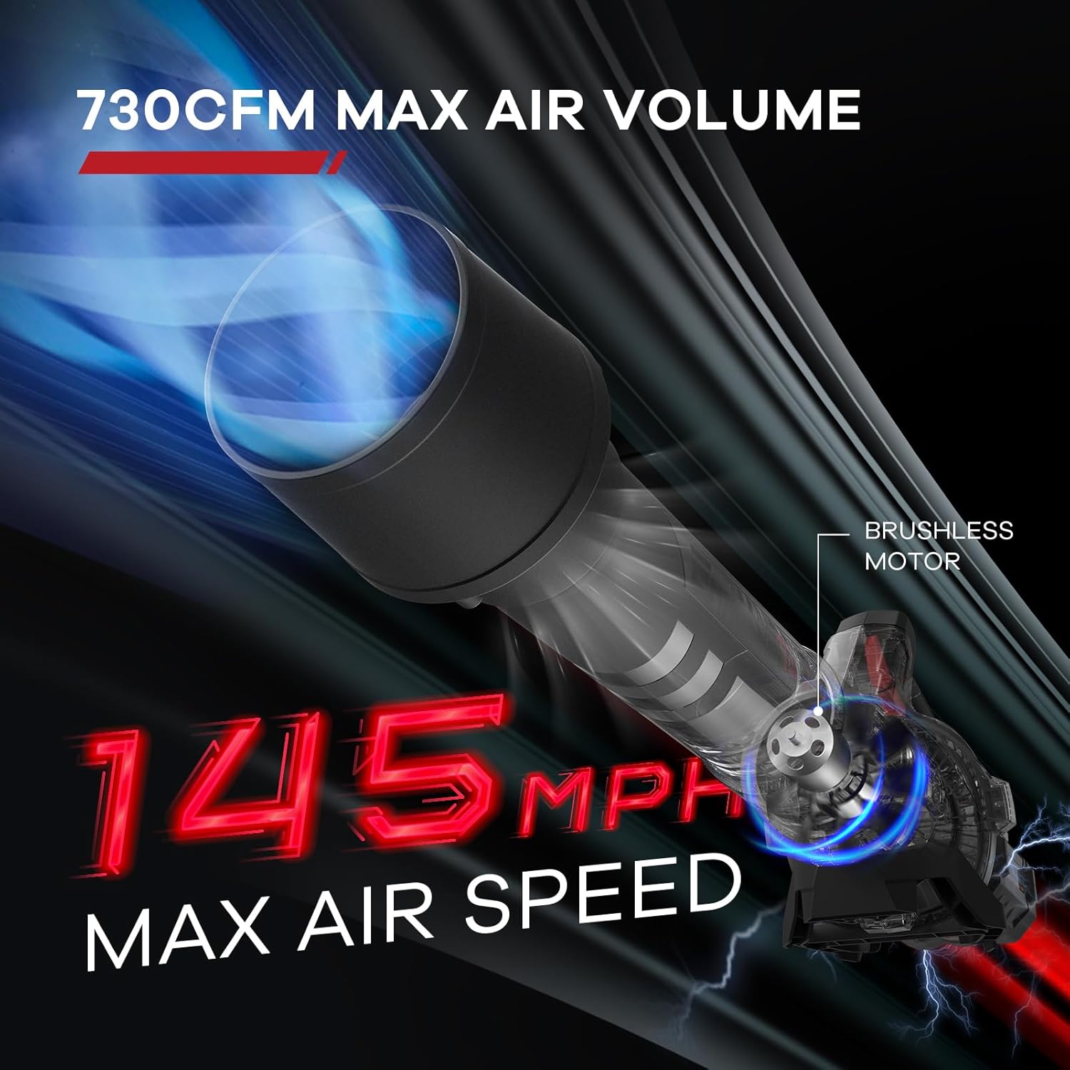 - [730CFM MAX AIR VOLUME] With the optimized air duct and flow, and the balance of run time, the blower's TURBO mode can deliver exciting 730CFM max air volume with patented airgale siphon technology and 145MPH max air speed
