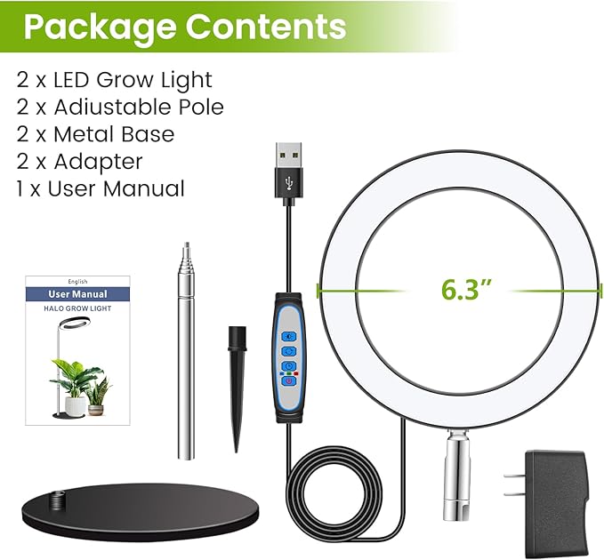 • Multipurpose Halo Plant Light: Our indoor plant light comes with a metal base and plastic ground stakes, 2 installation methods to suit different scenarios, making it easy to use on various surfaces such as desktops, countertops, or floors