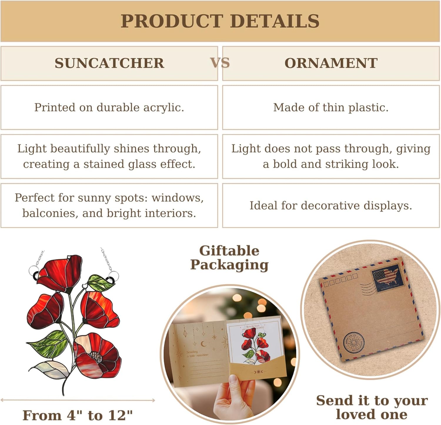 Poppies August Birth Flower Acrylic Suncatcher Stained Glass Effect Window Car Hanging Christmas Ornament Indoor Outdoor Decor Garden Sun Catcher for Flower Lover for Women Mom Grandma