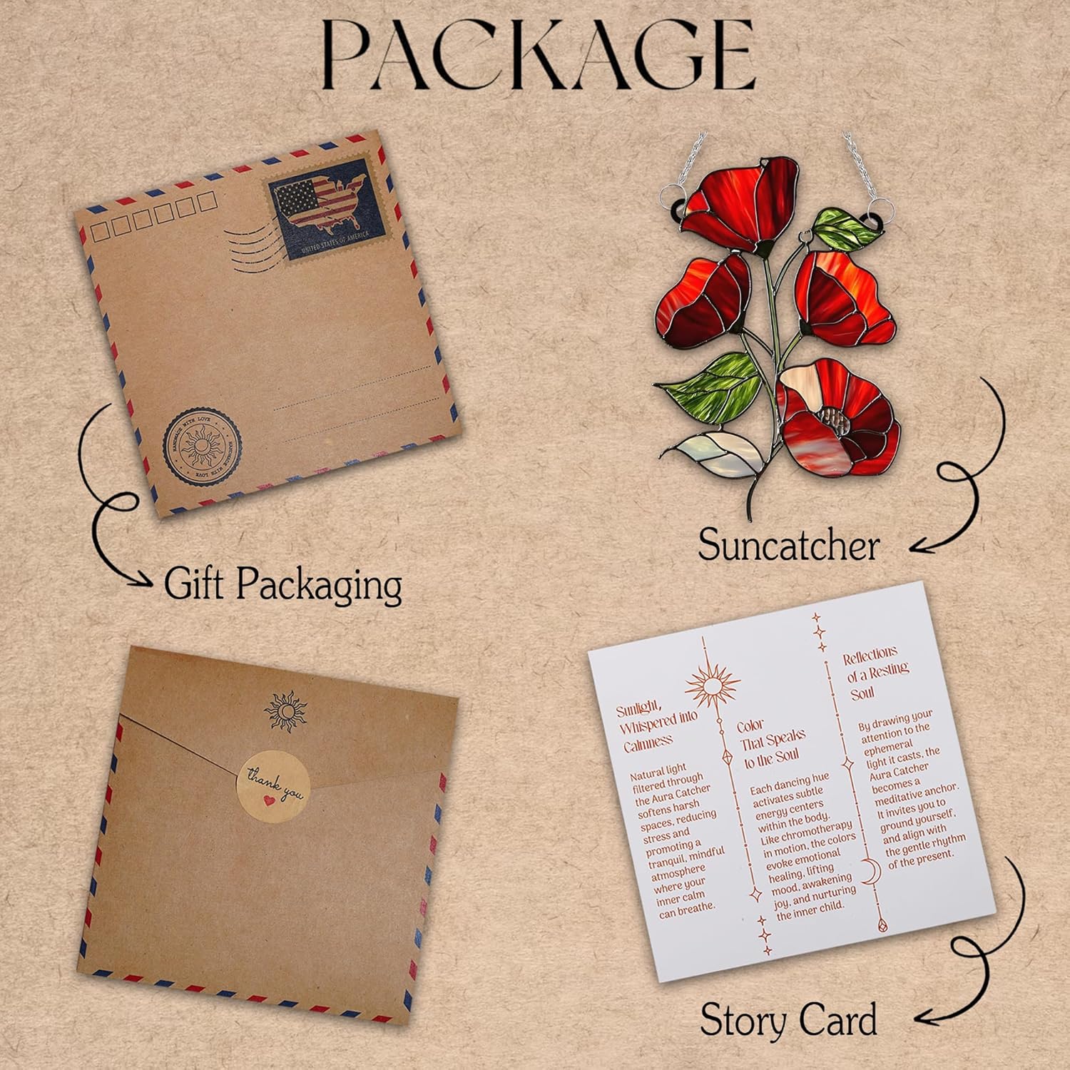 Poppies August Birth Flower Acrylic Suncatcher Stained Glass Effect Window Car Hanging Christmas Ornament Indoor Outdoor Decor Garden Sun Catcher for Flower Lover for Women Mom Grandma