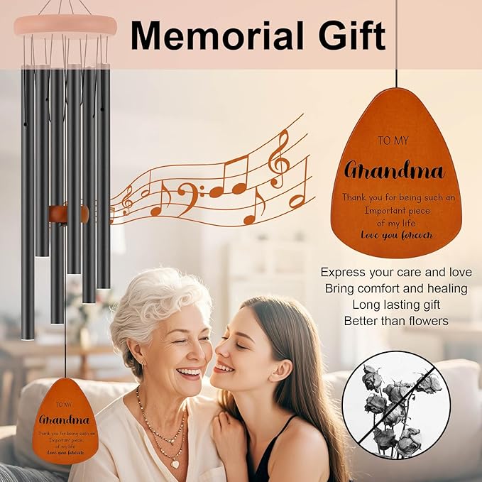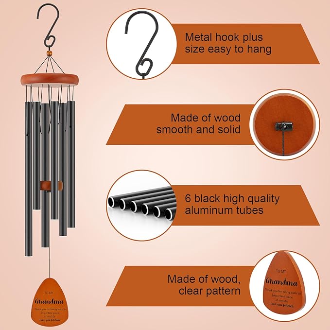 • Soothing Sounds for Relaxation: With its precise design and six thick-walled aluminum tubes, this wind chime gift produces soothing melodies, creating a serene atmosphere that promotes relaxation and tranquility. It's a perfect way to express your love and strengthen your bond with your grandma.