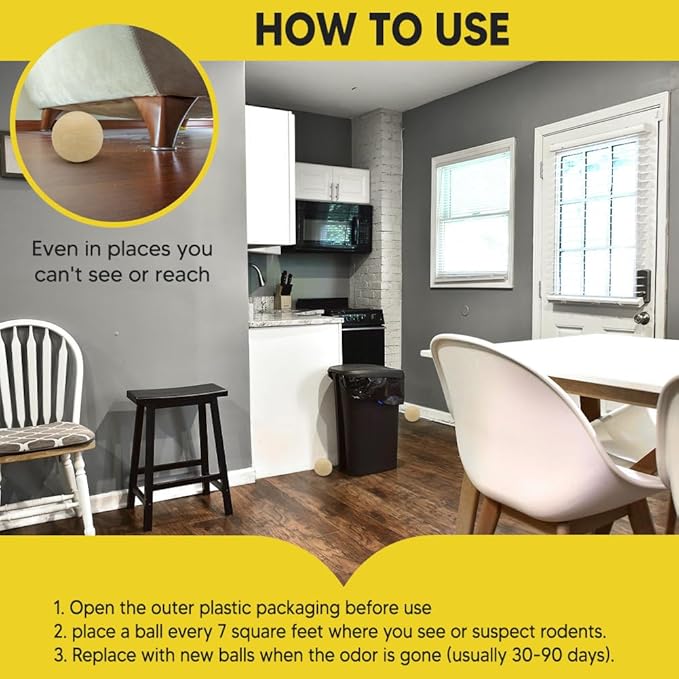 • LONG-LASTING RODENT REPELLENT EFFECT: Each rodent repellent ball provides lasting defense for up to 60–90 days. It’s a hassle-free way to repel mice and rats from your home without constant maintenance or reapplication