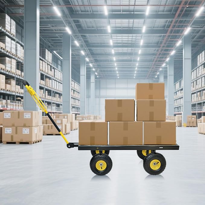 • 950LB Heavy Load Capacity: Built with a solid steel frame and reinforced construction, this cart handles up to 950 lbs—perfect for heavy-duty hauling of firewood, tools, or farm supplies.