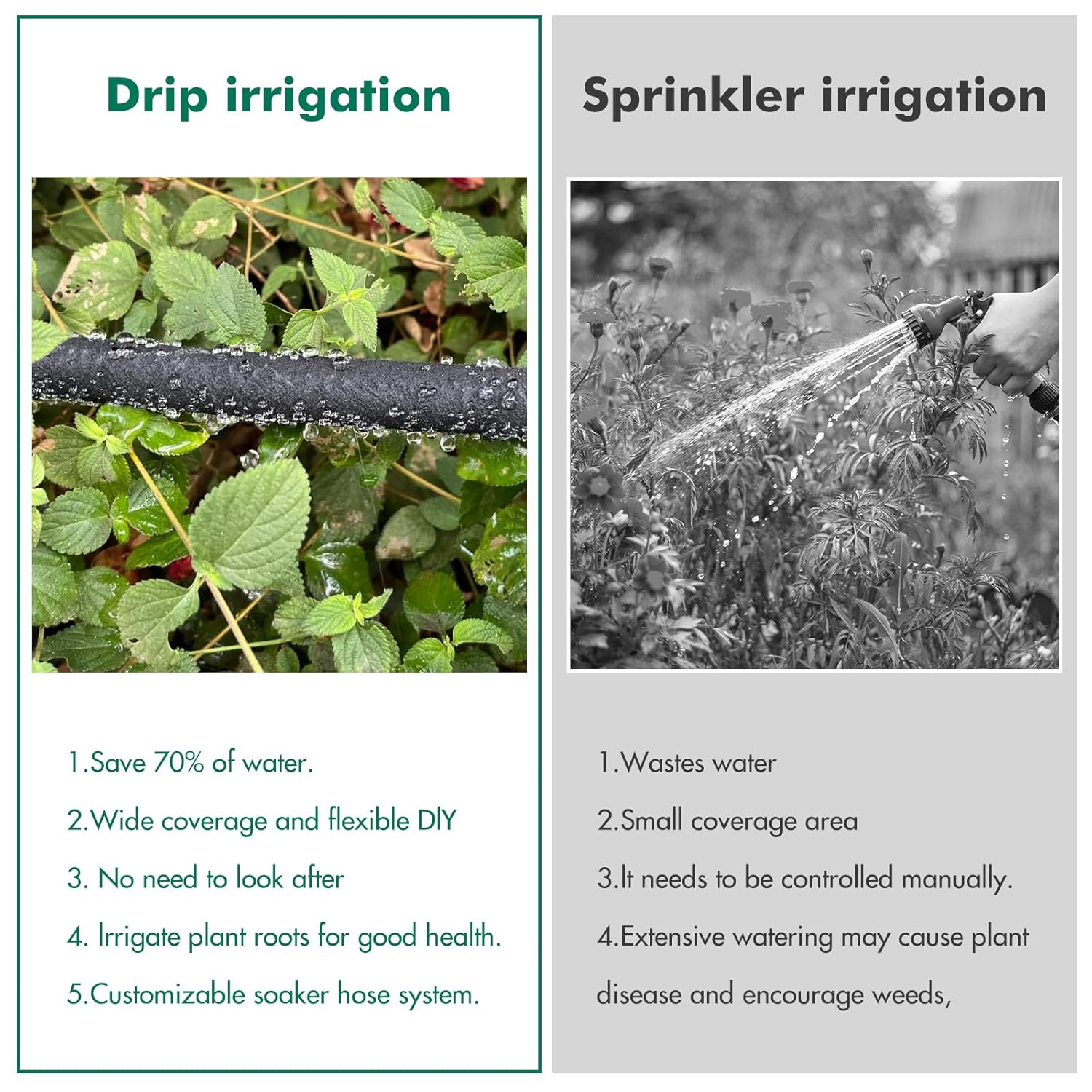 • EFFICIENT WATERING: The hose set is very suitable for agricultural, garden, lawns irrigation. Due to slow release, the soil around the plant roots can fully absorb the water. Compared to conventional sprinkler irrigation systems, This system allows you to easily customize your watering system for maximum efficiency.