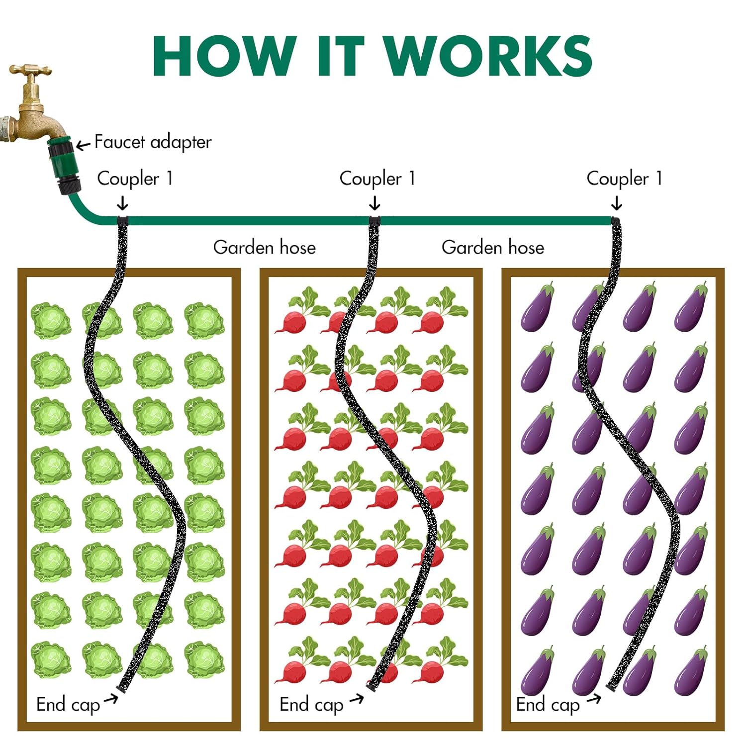 • EASY TO INSTALL: suitable for use in the ground, buried under mulch or bark, with connectors for easy installation and integration into existing garden watering systems, the hose can be cut and used according to the usage scenario.