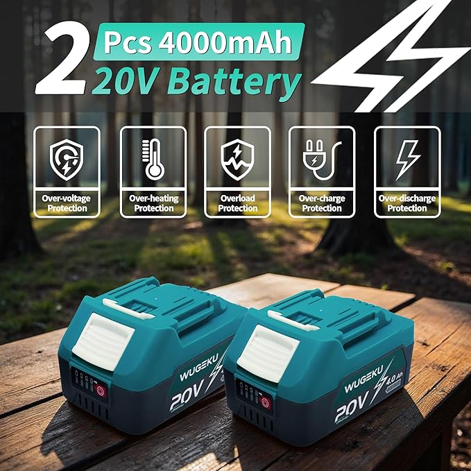 • 2 x 4.0Ah Battery: The battery chainsaw is equipped with 2 x 4.0Ah rechargeable batteries, which provide longer runtime and stable power output.