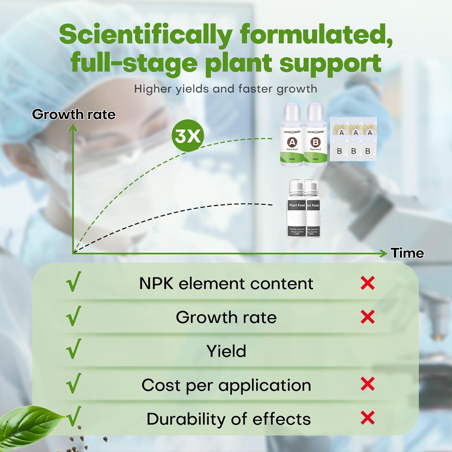 • Precise & Scientifically-Balanced AB Formula: Unlock professional-grade results with Ahopegarden’s two-part hydroponic nutrient solution. Our formula separates incompatible minerals to maximize potency, ensuring your plants absorb a full spectrum of micro and macronutrients for larger yields and healthier growth.