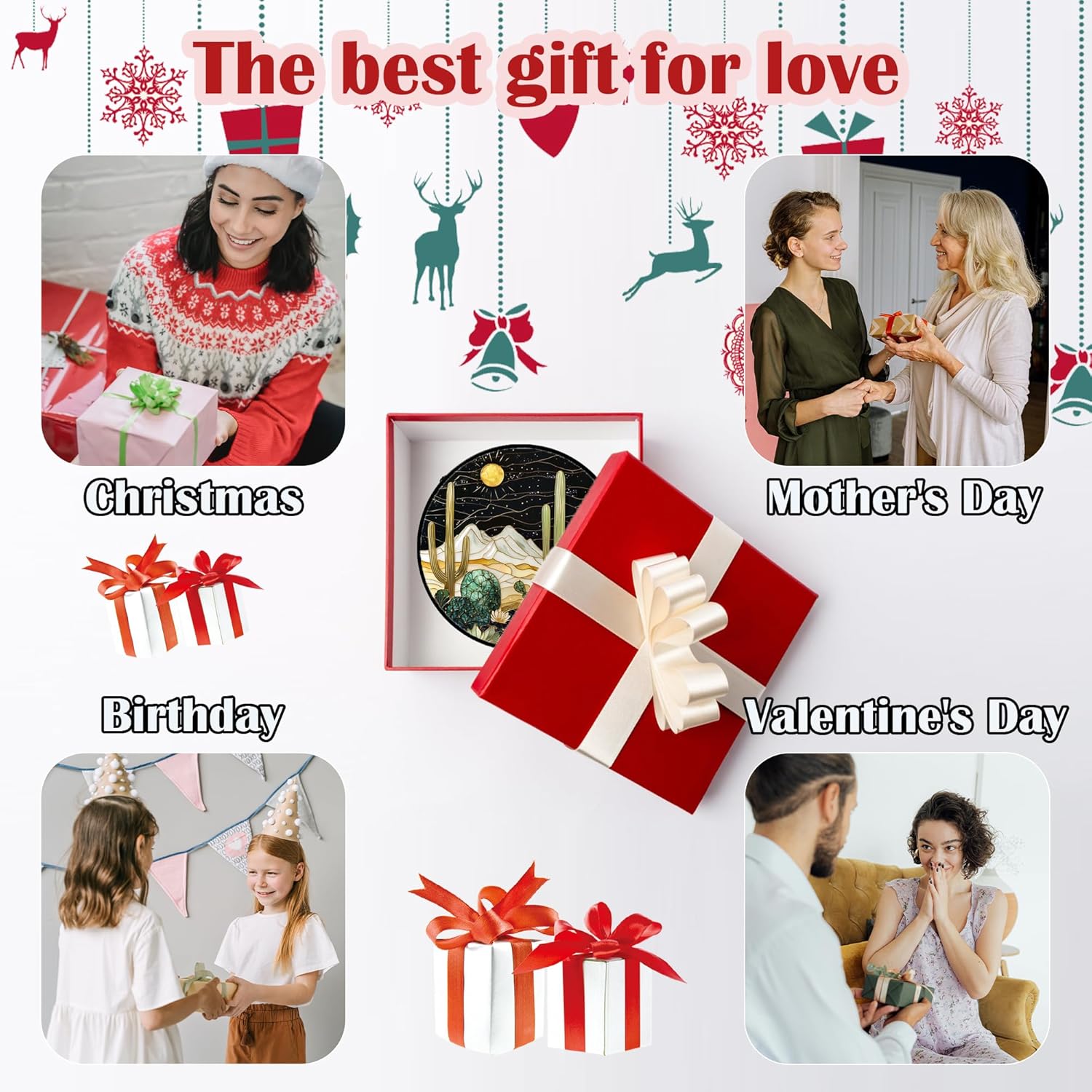 Stained Glass Window Hanging, Black and White Golden Cactus Nature Suncatcher for Doors Window Home Starry Sky Sun Catchers Decor Mother's Day Birthday Gifts for Women, Men Mom 7.8 in