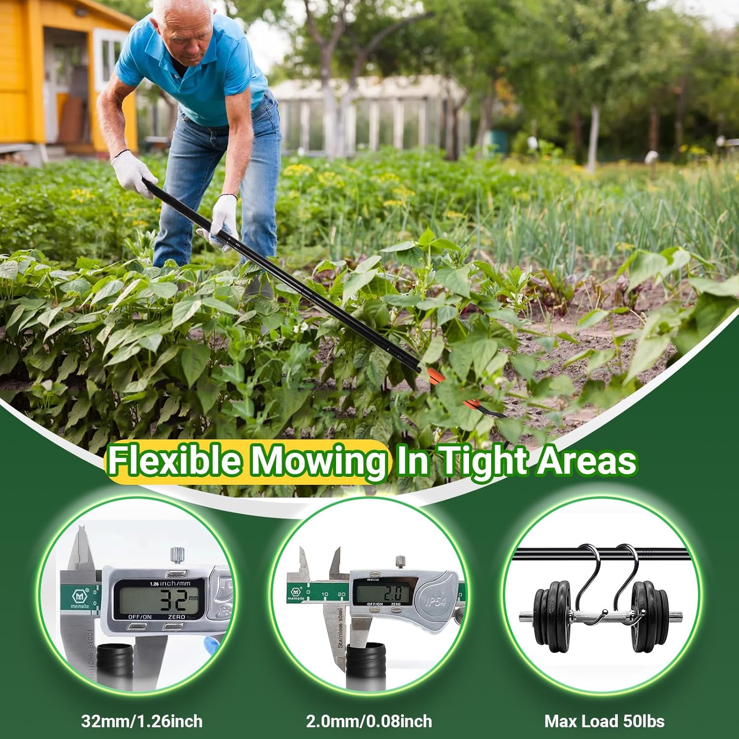 • ADJUSTABLE LONG HANDLE FOR FLEXIBILITY USE: The 71-inch splice handle minimizes the need to bend or kneel, easing the strain on your back and knees while letting you cover more ground efficiently.The 32MM diameter pole makes it sturdy enough for light-duty work, and there's no need to bend over when gardening!
