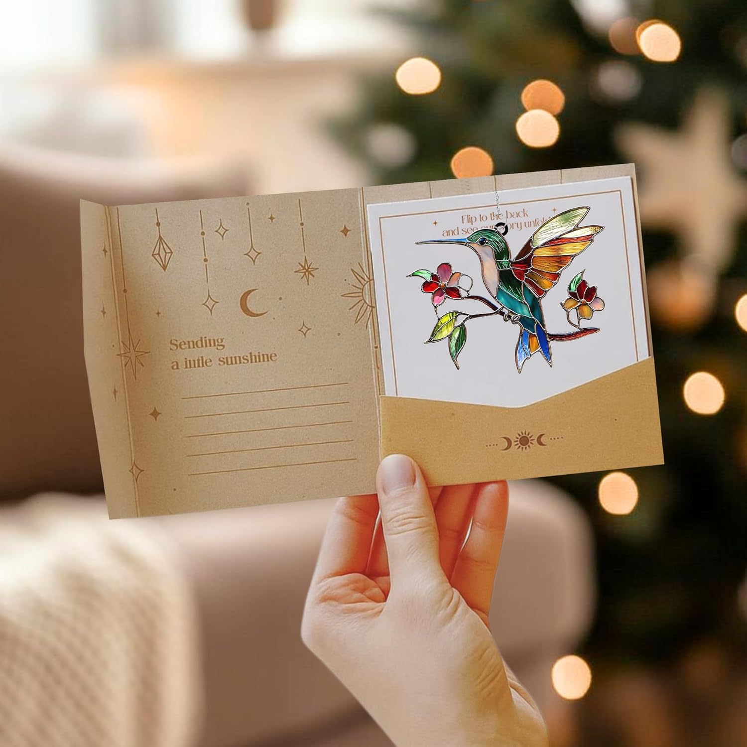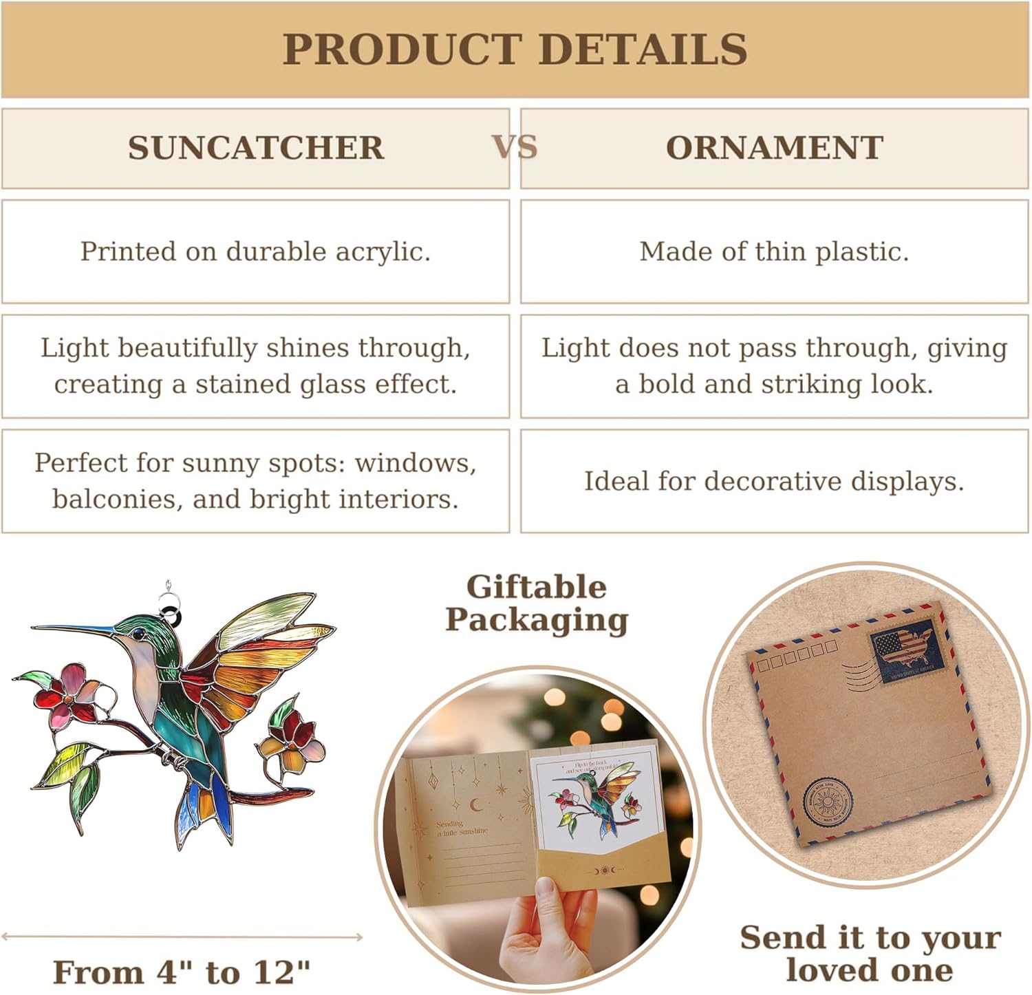 Hummingbird and Flower Acrylic Suncatcher Stained Glass Effect Window Car Hanging Christmas Ornament Indoor Outdoor Decor Garden Sun Catcher Panel for Bird Lover for Women Mom Grandma