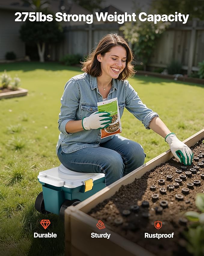 • Relieves Back and Knee Pressure: Designed with comfort in mind, VEVOR garden seat with wheels doubles as a sturdy bench, making low-ground tasks like planting and weeding easier without the need to squat or bend. It effectively reduces back and knee pain, making it ideal for gardening.