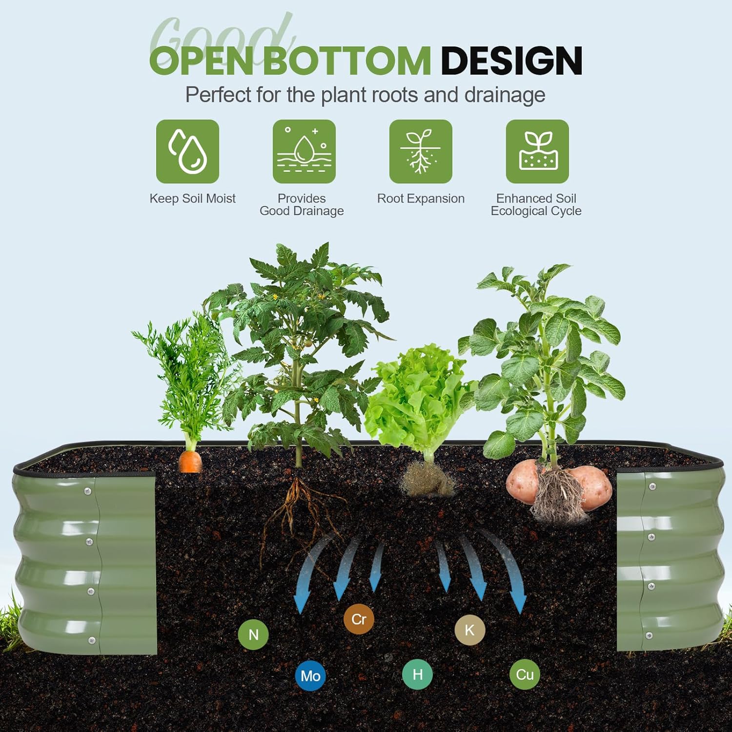 • Root-Friendly Drainage: Open-bottom design prevents waterlogging and root rot while promoting nutrient absorption. Made with galvanized materials to protect soil integrity, ensuring healthy growth of vegetables, herbs, flowers, and fruits