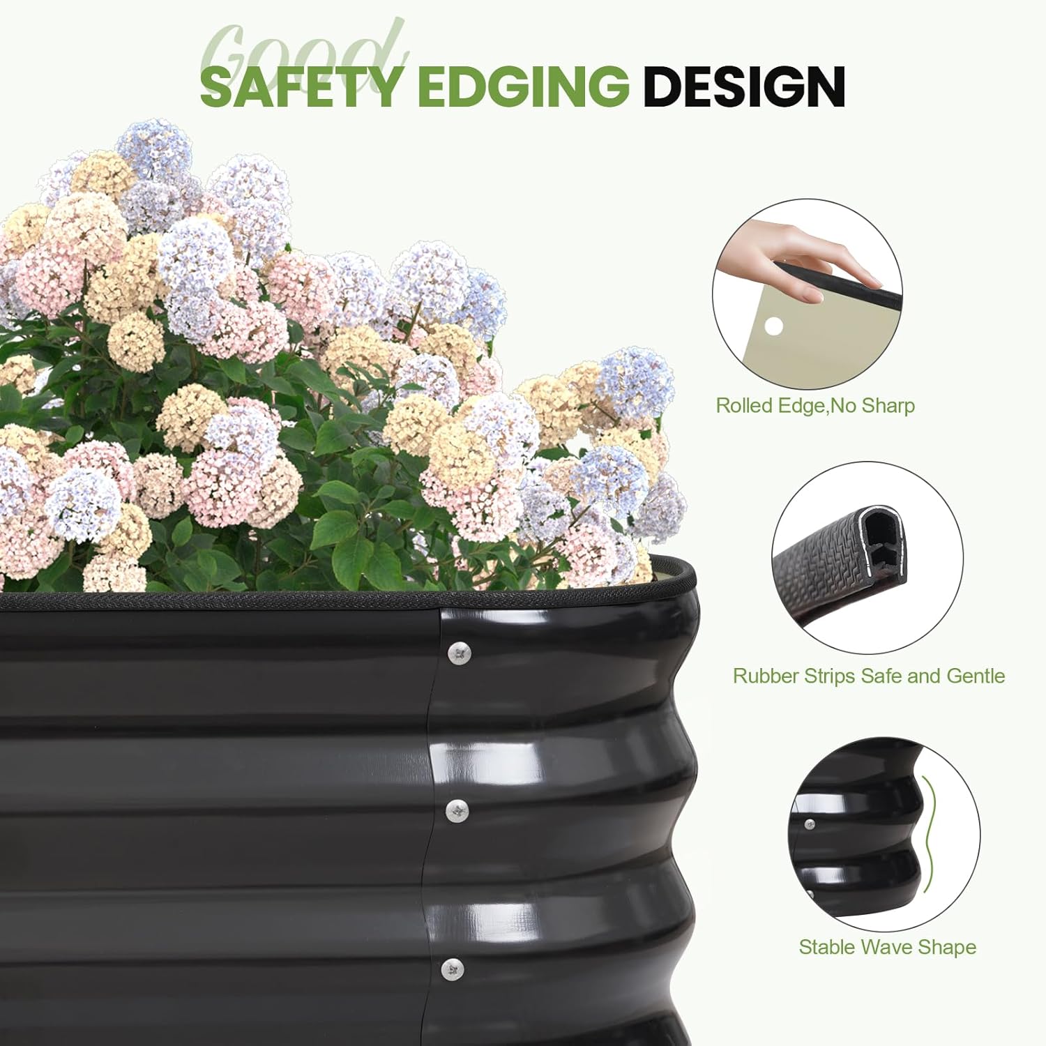 • Durable Galvanized Steel for Longevity: Crafted from thickened steel with a rust-resistant coating and reinforced wavy panels. This design provides superior support, prevents soil leakage, and ensures your garden bed remains sturdy and intact for years to come