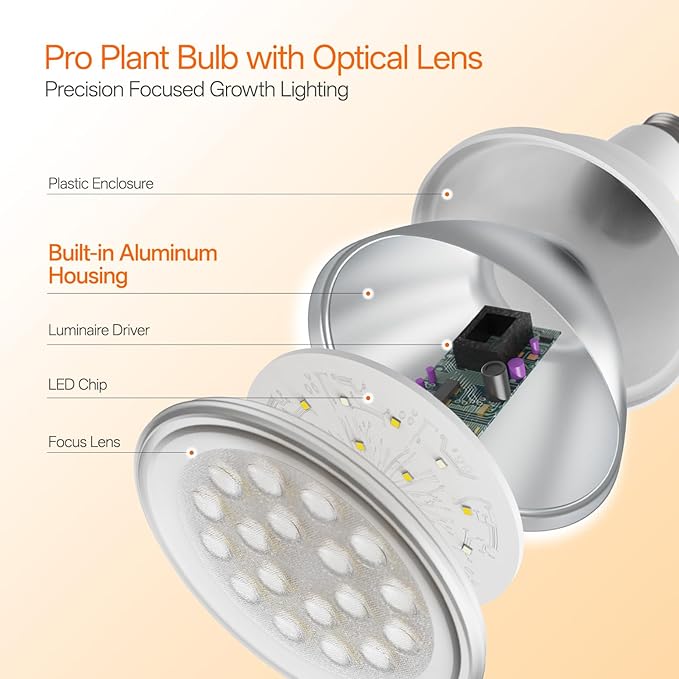 • Stylish Design with Performance Optics - Engineered for plant lovers, this eye-catching black and gold floor grow lamp features an 18W non-dimmable LED bulb with specialized optical lens. The precision lens delivers focused light distribution, while the fixed 3800K color temperature ensures optimal growth conditions—blending advanced horticultural science with premium design aesthetics