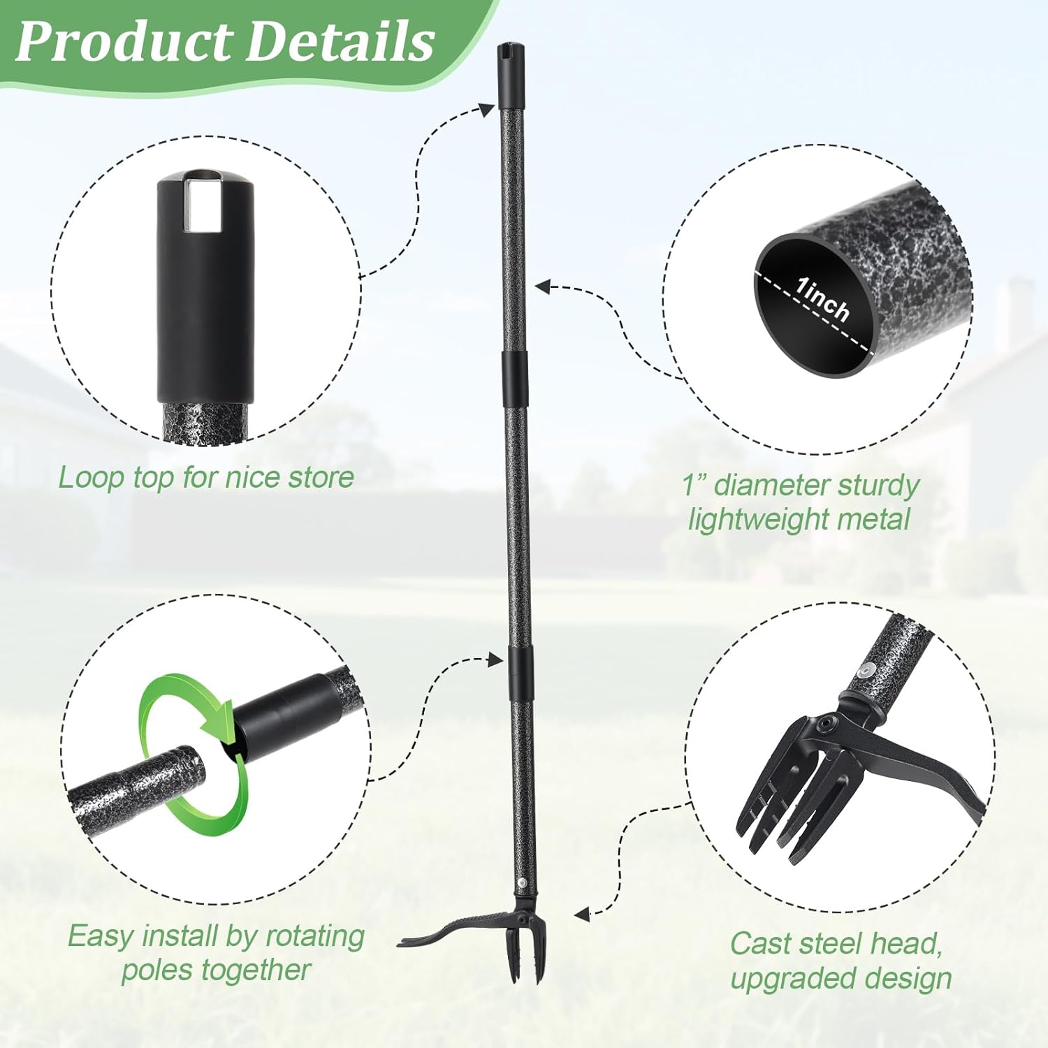 • BUILT TO LAST: Solid 1-inch steel tube and waterproof coating offers this weed picker’s handle exceptional durability and all-weather performance. The robust construction prevents bending or snapping while the protective coating resists rust, rain, and moisture—ensuring years of reliable use in any season