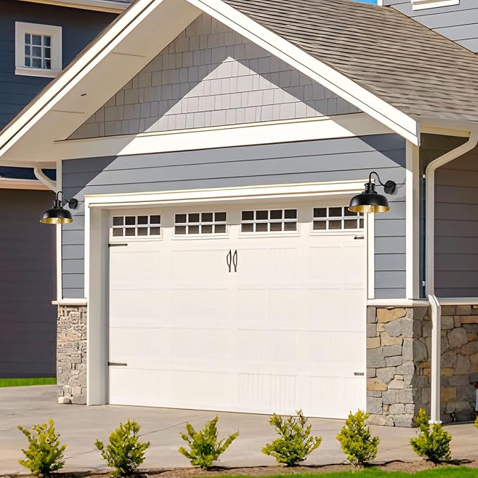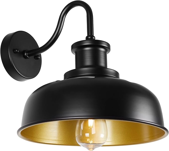 • Modern Black Barn Light with Luxurious Gold Interior: Elevate your outdoor spaces with a sleek black finish and gold interior, designed to enhance brightness and add a modern farmhouse touch