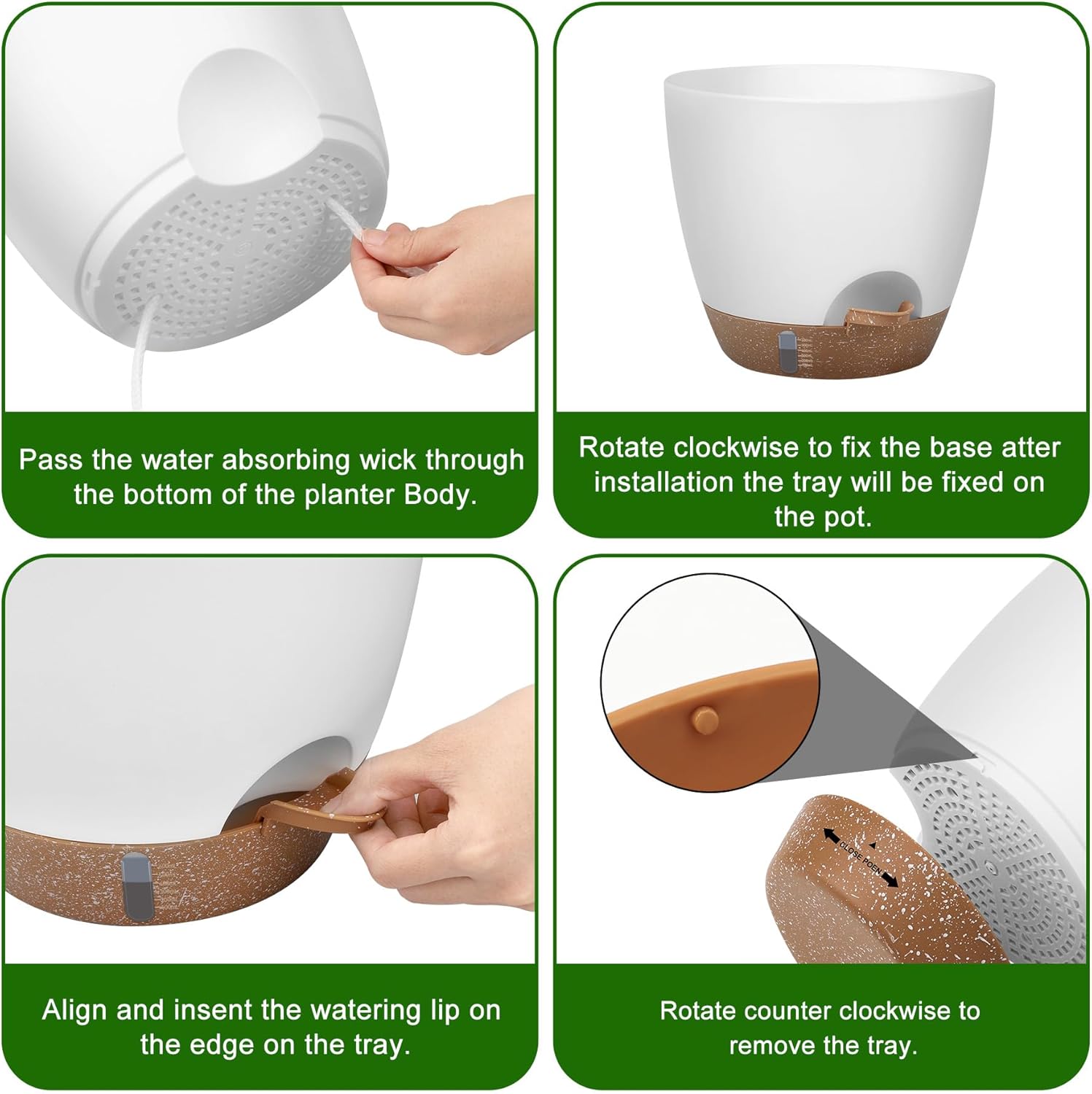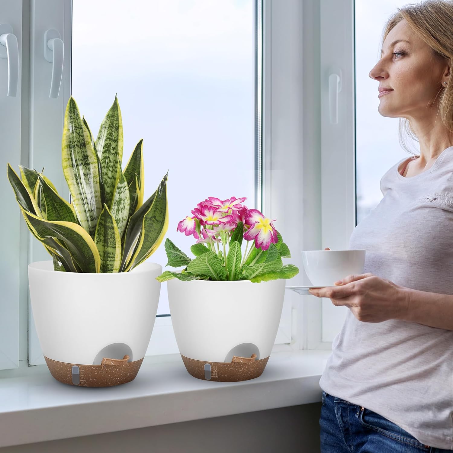 • 𝐒𝐞𝐥𝐟-𝐖𝐚𝐭𝐞𝐫𝐢𝐧𝐠 𝐒𝐲𝐬𝐭𝐞𝐦 𝐰𝐢𝐭𝐡 𝐖𝐚𝐭𝐞𝐫 𝐋𝐞𝐯𝐞𝐥 𝐈𝐧𝐝𝐢𝐜𝐚𝐭𝐨𝐫 – Each planter features a removable watering feeder and absorbent wick that provide consistent moisture to your plants. The clear water level window with measurement marks allows easy monitoring, helping prevent overwatering or underwatering. Perfect for busy plant lovers.