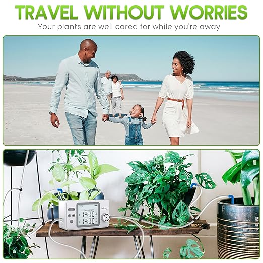 • SET IT AND FORGET IT - Your plants get watered on schedule—even when you're not home. Go on vacation or travel for work without worrying about dry soil or wilting leaves