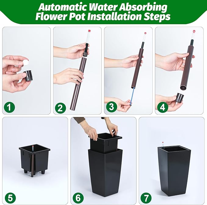 • Automic Watering System: Each tall black planters comes with built-in drainage holes and a sink to ensure that your greenery absorbs water smoothly and minimizes root rot. When the water level is low, the automatic watering system kicks in to provide your plants with the necessary moisture with minimal effort