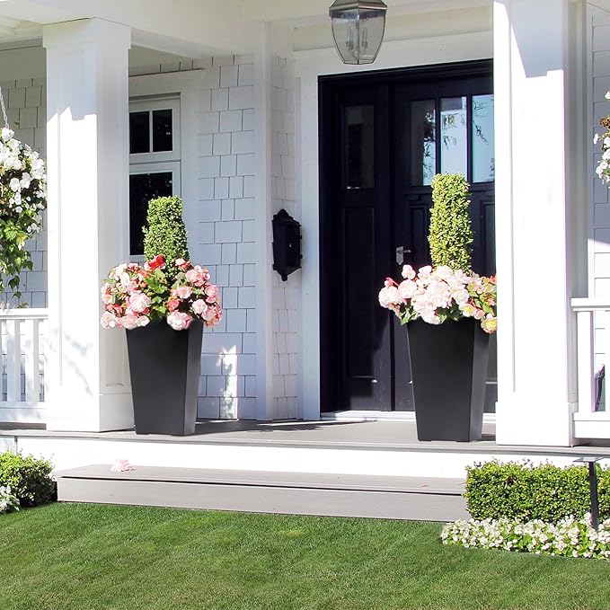 • Stylish and Durable Design: The outdoor planters are crafted with classic injection molding that showcases a classic smooth finish. Made of high-quality, durable, weather-resistant plastic, these tall planters maintain their color and structural integrity throughout the seasons