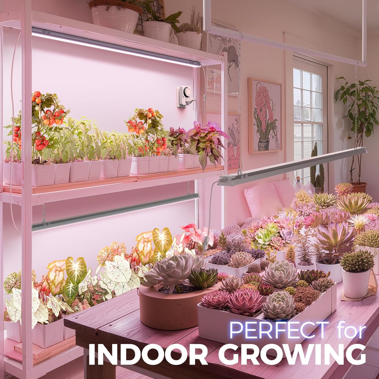 • Red & Blue Full Spectrum: This 4FT grow lights for indoor plants full spectrum 620-680nm red light to accelerate germination, flowering, and fruiting, plus 430-460nm blue light to boost photosynthesis for stronger stems and leaves. With 5200 lumens and red blue synergy, it delivers ample indoor lighting to maximize plant growth and yield, and is ideal for succulents and other root tuber plants