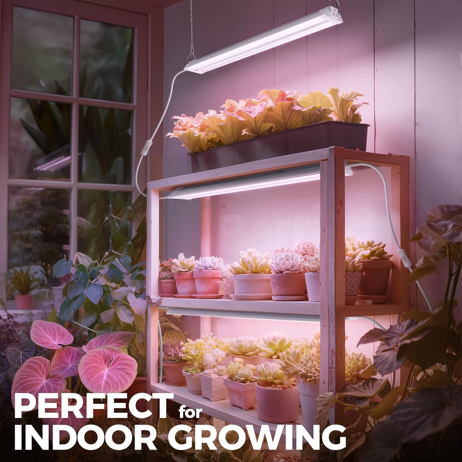 • Red & Blue Full Spectrum: This 2FT grow lights for indoor plants features 620-680nm red light to accelerate germination, flowering, and fruiting, plus 430-460nm blue light to boost photosynthesis for stronger stems and leaves. With 2900 lumens and red blue synergy, it delivers ample indoor lighting to maximize plant growth and yield, and is ideal for succulents and other root tuber plants