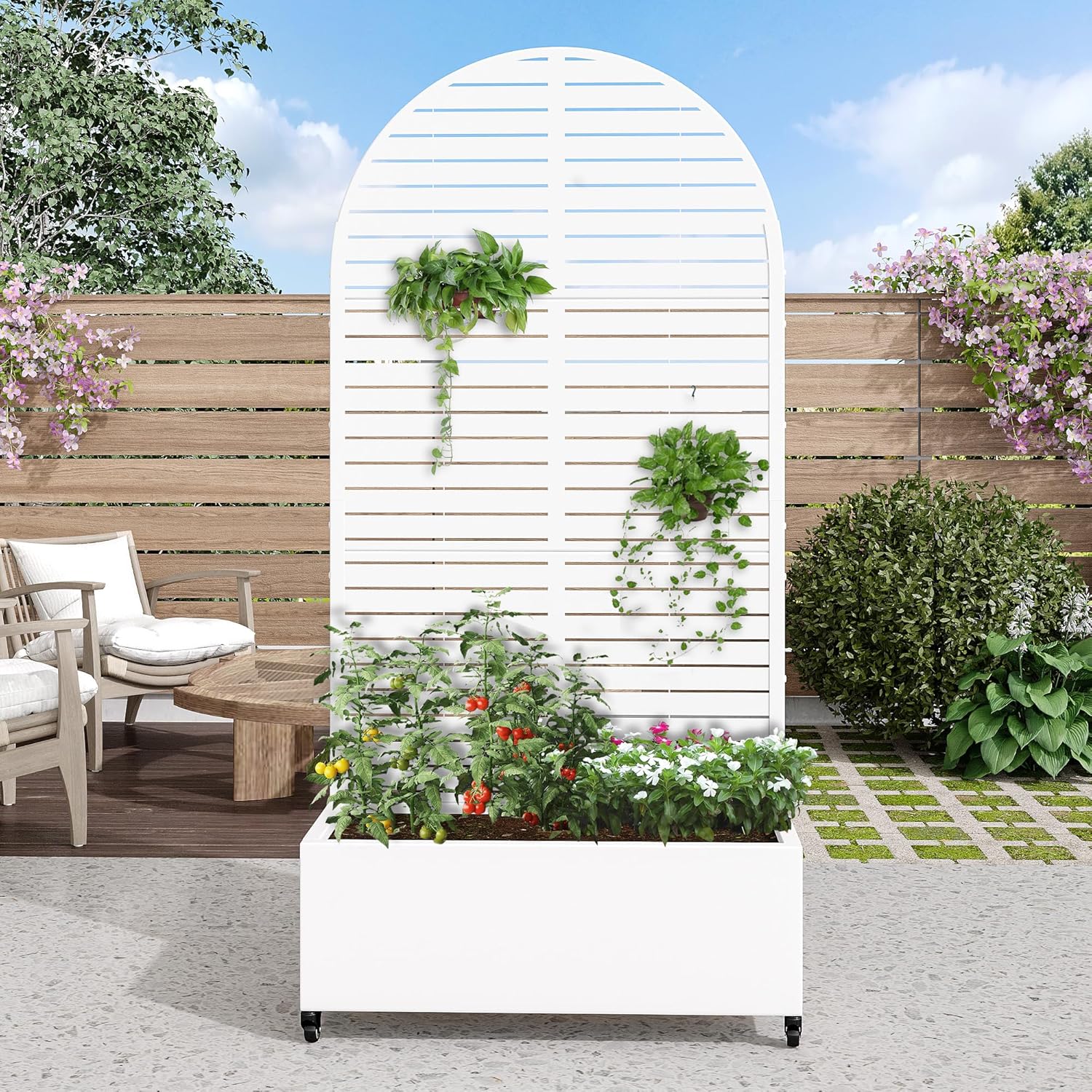 • Space-Efficient Trellis Design: The integrated trellis allows you to grow climbing flowers and vegetables, maximizing vertical space and adding charm to small gardens.