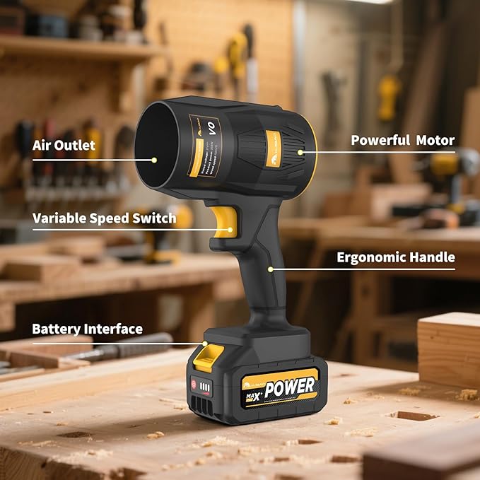 - 【Versatile & Multi-Purpose】The leaf blower cordless is a versatile, all-season tool that makes clearing leaves, dust, and water from patios, gardens, and driveways a breeze. It’s also perfect for workshop maintenance, easily handling sawdust, wood chips, and debris. This blower is the ideal solution for maintaining a clean environment all year round, offering efficient and hassle-free cleaning in every corner of your home or workspace.