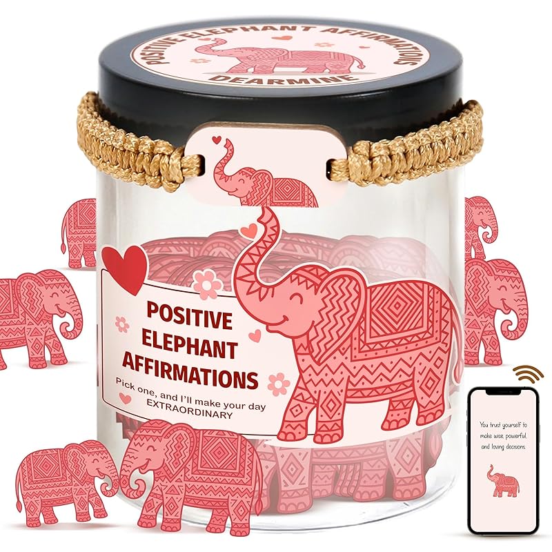 60 Emotional Support Elephant Affirmation Cards Jar, Positive Elephant Gifts, Elephant Stress Relief Gifts, Elephant Themed Gifts, Women Gifts Unique, Teen Girl Birthday Gifts