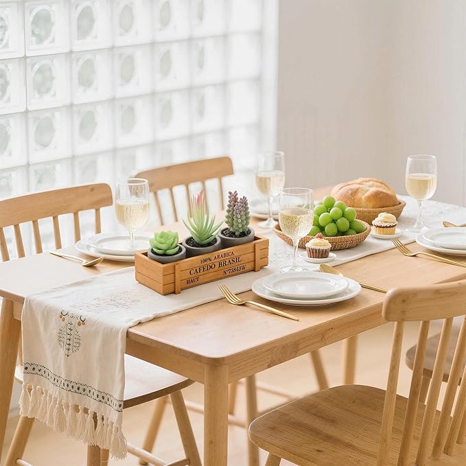• 【Gift-Ready 3-Piece Set】: Three mini faux plants indoor in 2.4" × 2" pots (1.6" base) with an 8.7" × 3.3" × 1.8" solid wood tray. Beautifully boxed—ideal for birthdays, housewarmings, holidays, or thank-you gifts