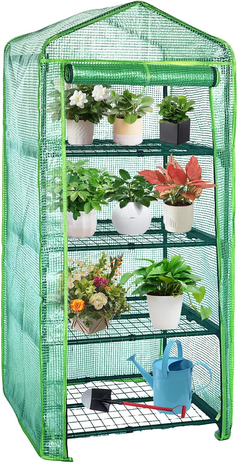 4 Tier Mini Indoor Greenhouse,27"x19"x62" Greenhouses with PE Cover and Roll-Up Zipper Door,Plastic Green House for Inside Grow Tent&Garden greenhouses for Outdoors