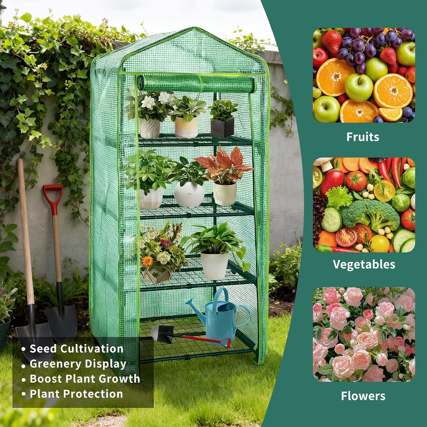 • Versatile Placement & Function: It works well indoors (on porches, balconies) or outdoors (in patios, gardens, yards). Remove the cover, and it doubles as a plant stand—you can also pair it with other larger structures for expanded growing space