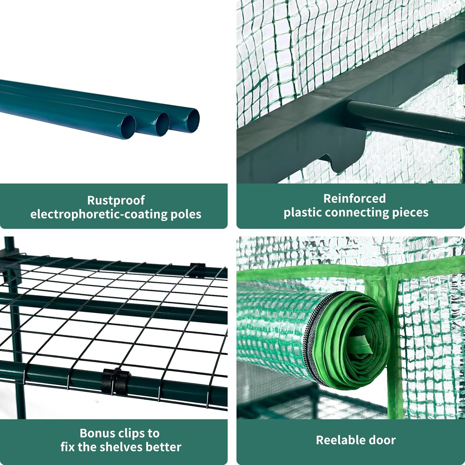• Durable & Eco-Conscious Build: The high-quality PE cover is non-toxic, waterproof, UV-proof, tear-resistant, and delivers good light transmission. Sturdy rust-proof coated steel pipes ensure it withstands wind and hail, suitable for year-round use
